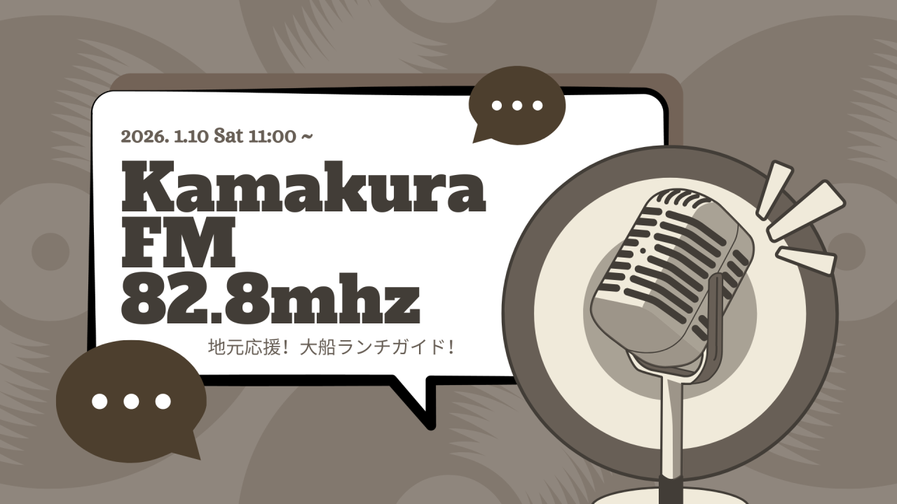 1月 10日(土)11時頃~ 出演するラジオ 鎌倉FM KAMAKURA GOODMORNING STATION 「地元応援!大船ランチガイド」でお話する内容をご紹介♪ グルメ&これからオープンする大船のお店の情報をお届けします!