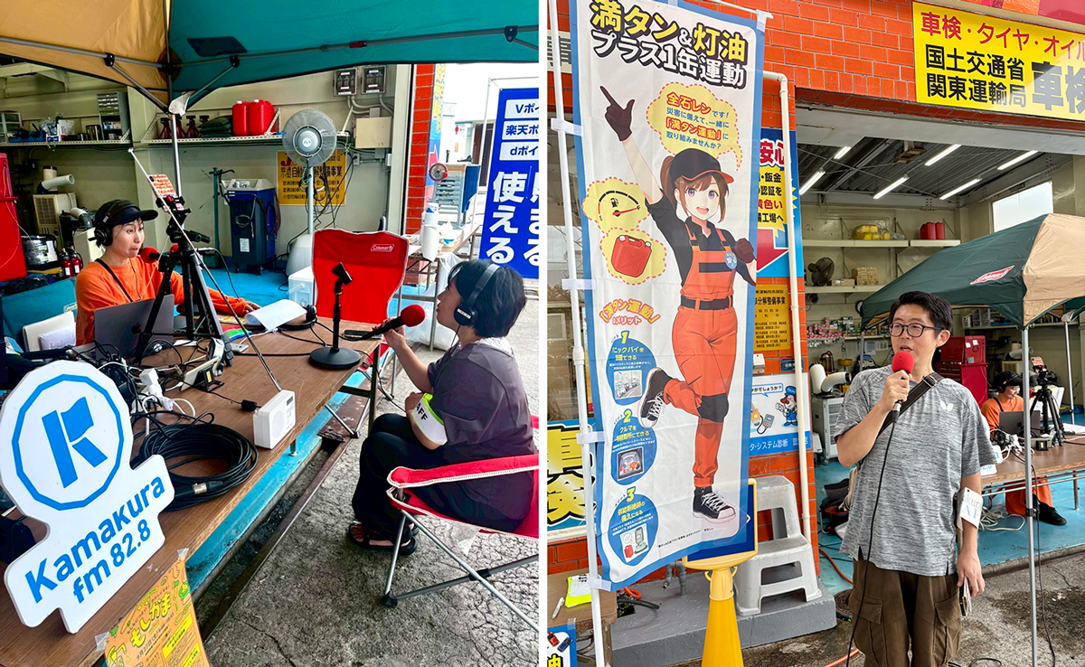 この日は 災害時を想定した非常用電源を用いて、毎週土曜日午前中放送の KAMAKURA GOODMORNING STATION を生放送しています。
