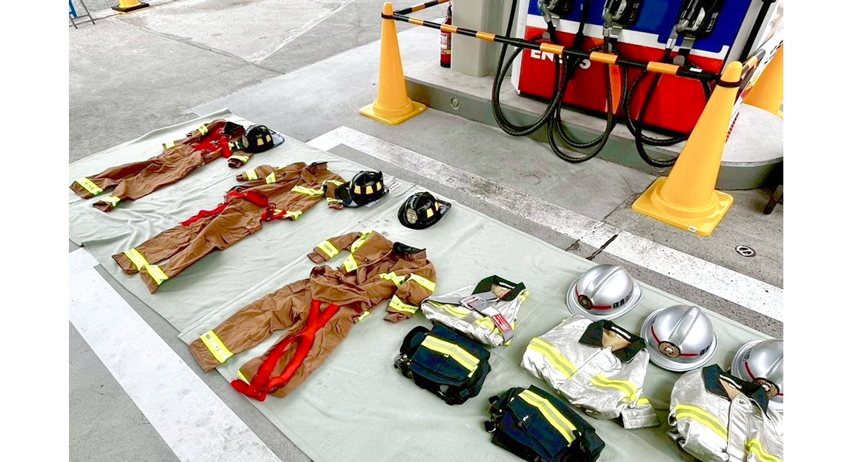 最後、はしご車は給油してから帰りますよ。