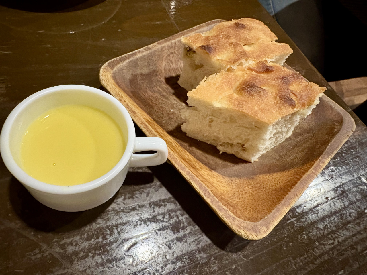 トラナスのランチは、ミニスープと自家製フォカッチャが付いてくる♪