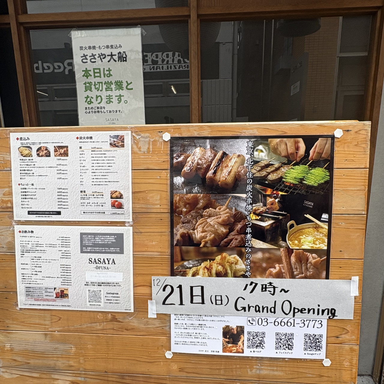 大船の商店街 いまやがあった場所に、炭火串焼・もつ串煮込み ささや大船がオープン予定。