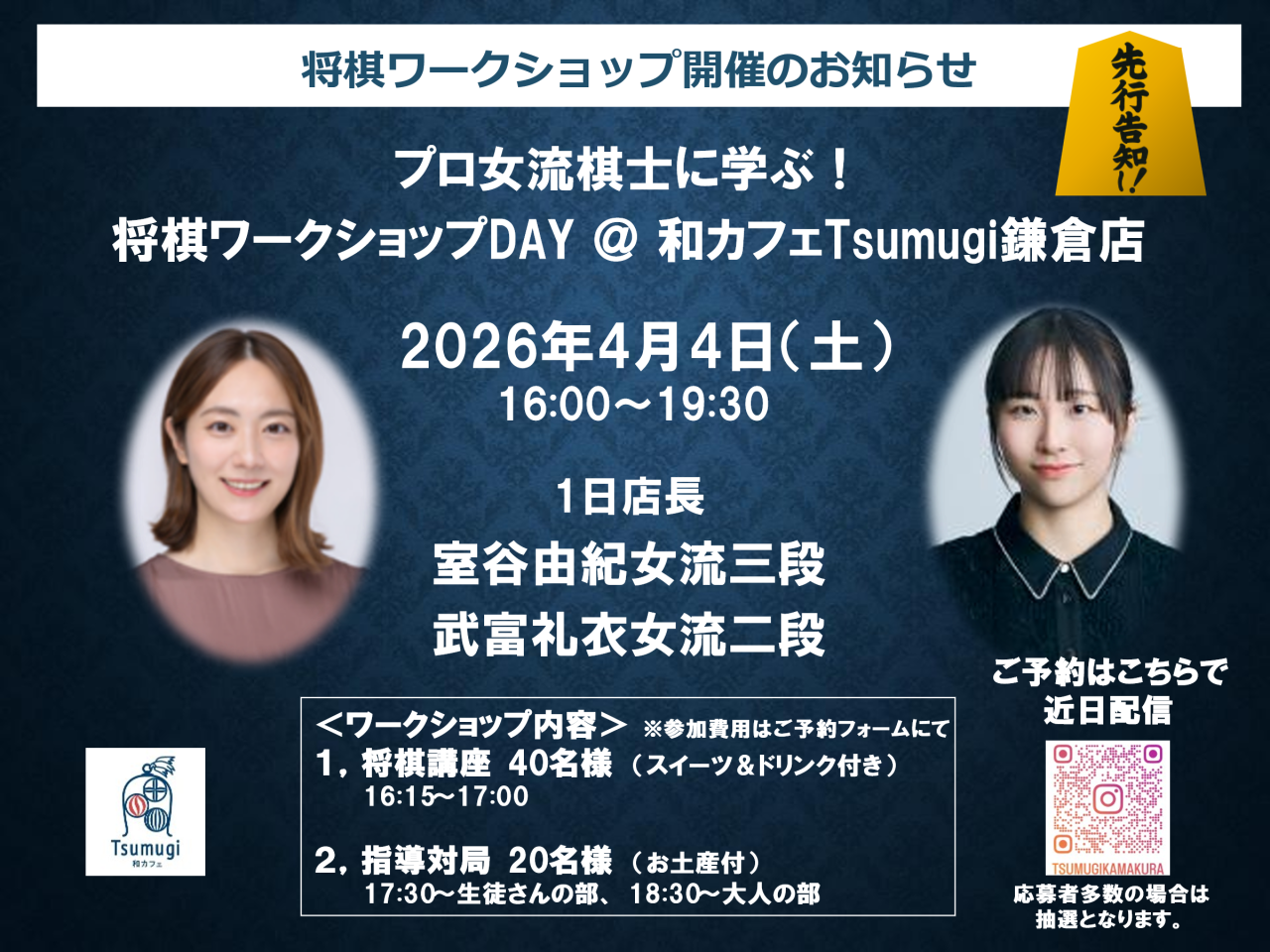 和カフェTsumugi 鎌倉店で、プロ女流棋士を招いた「将棋のワークショップ」を春休みに開催!
