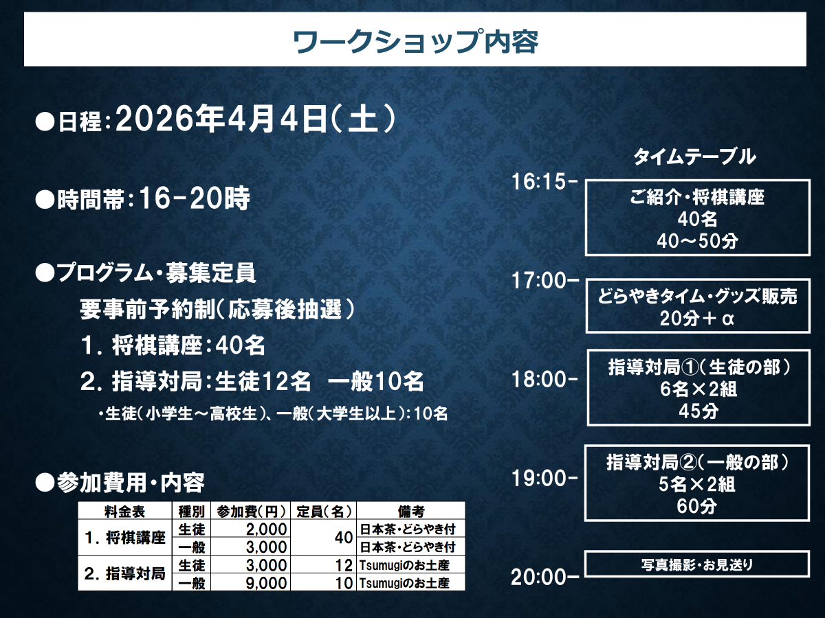 □ 将棋講座(スイーツ&ドリンク付き)
