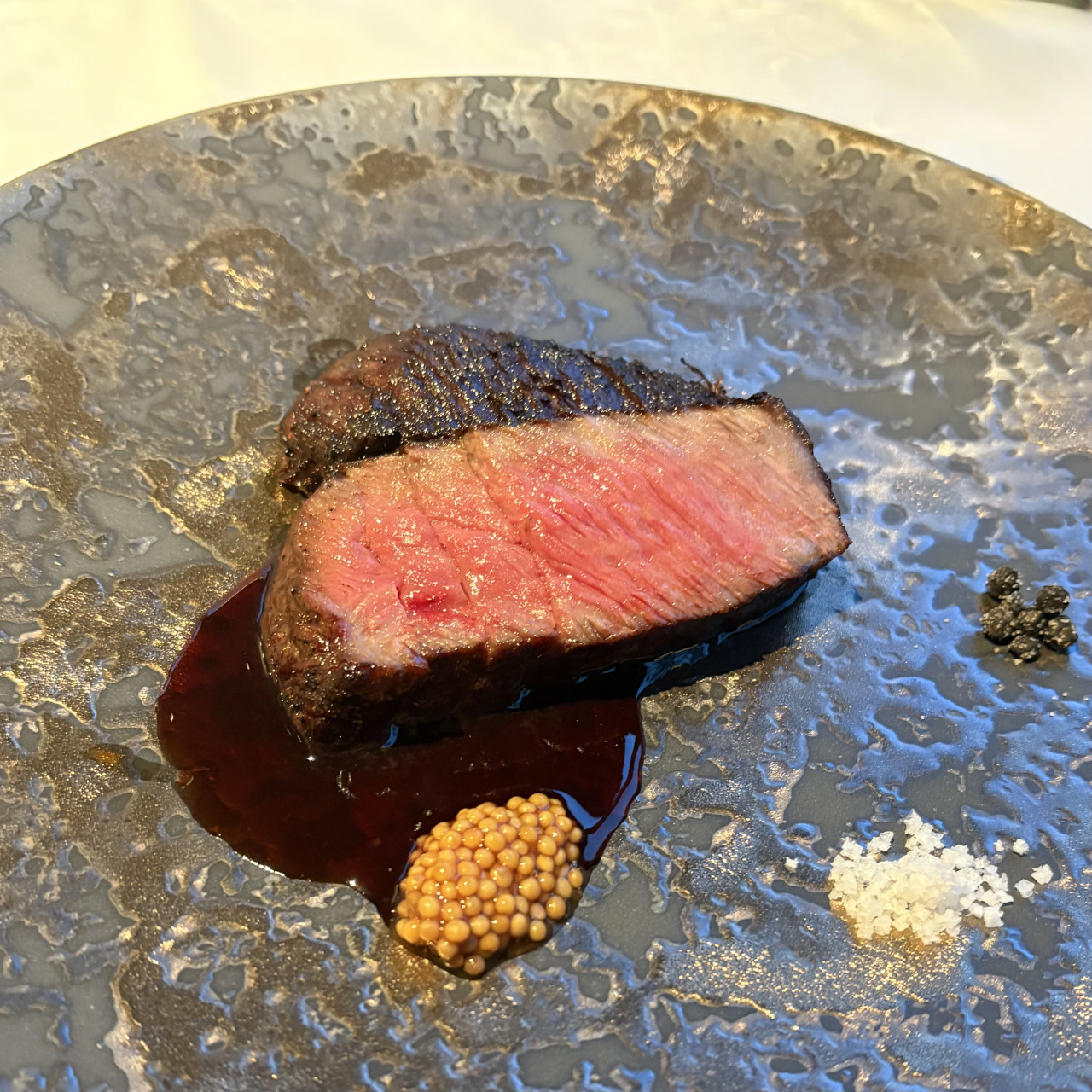 お肉を切る厚さによって食感も変わるらしく、最初の2枚は薄めに切ってある。