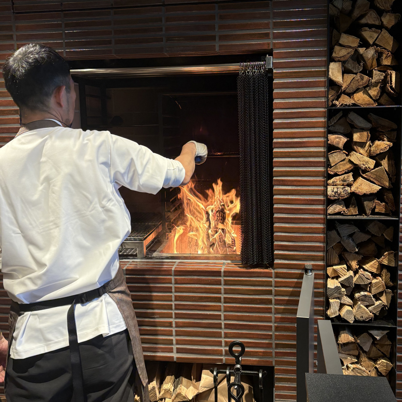薪で焼くことによって表面はクリスピーだけど、水分は多めで、お肉がパサパサにならないよ。